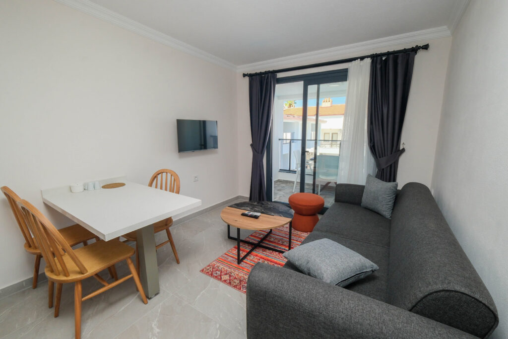 Hem aileler hem de çiftler için ideal olan tesisimiz; 15 adet 2 yatak odalı ve 23 adet 1 yatak odalı apart dairesiyle toplam 130 yatak kapasitesine sahiptir. Geniş metrekareli, tam donanımlı mutfaklı daireler; uzun konaklamalar, aile tatilleri, grup arkadaş buluşmaları ve rahat, özgür bir tatil arayan tüm misafirler için özel olarak tasarlanmıştır.