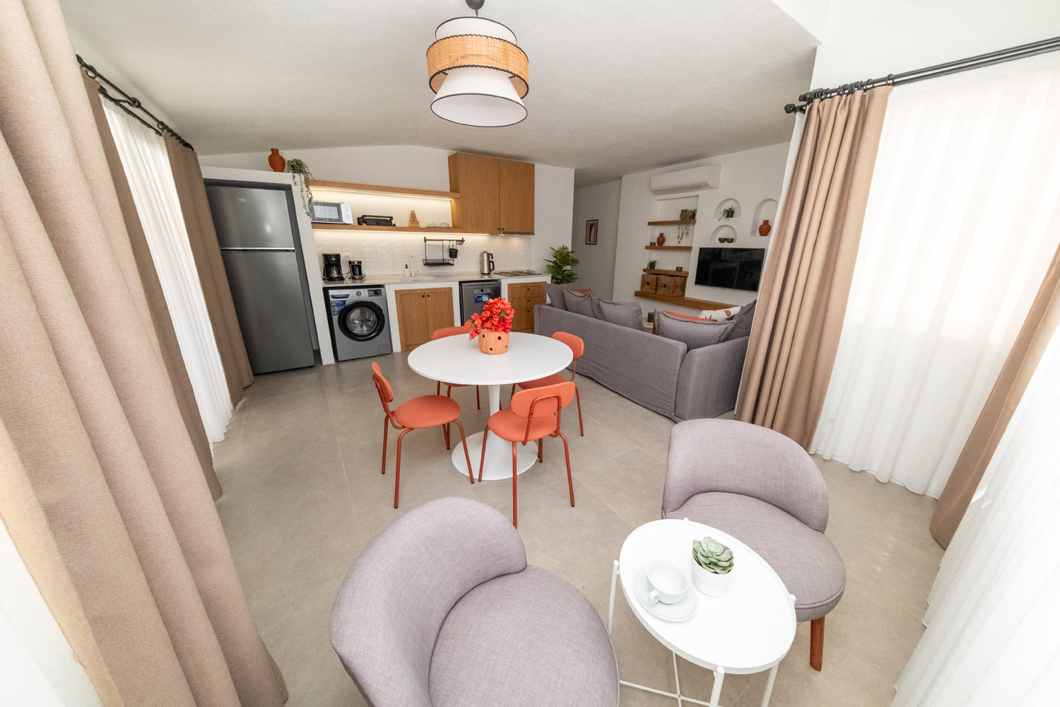 70 m² büyüklüğündeki Köşe Suite Apart Dairelerimiz, Diplomat Suites’in en geniş ve en ferah konaklama seçenekleridir. Köşe konumları sayesinde daha aydınlık ve geniş bir yaşam alanı sunar.